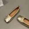 Flache silberne Einzelschuhe Damen Frühling und Sommer Damenschuhe Mary Jane Schuhe Sojabohnenschuhe