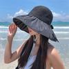 Summer Sun Hat Women's Straw Woven Anti Ultraviolet Sun Visor Hat with Big Brim Seaside Black Glue Breathable Bucket Hat Sun Hat