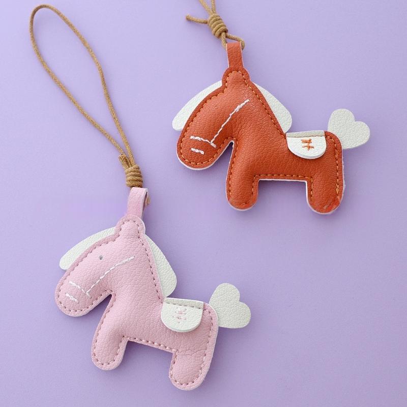 1Pcs Horse Pendant Decoration Trendy Cute Pony Pu Leather Keychain For Ladies Bag Keyring Charm Accessories