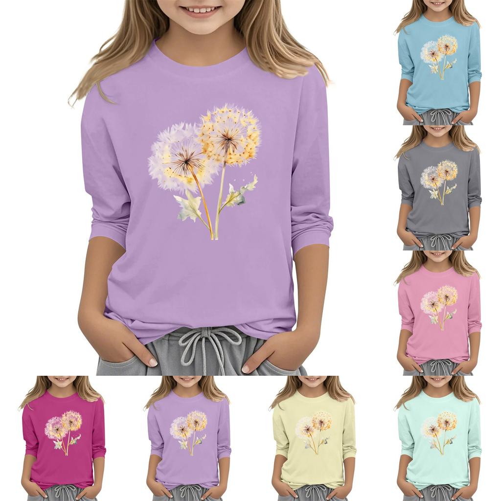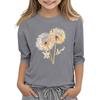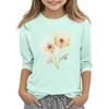 Children's 3/4 Sleeve Round Neck Flowers Print Casual Top