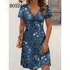 Women's Casual Dress Summer 2024 Marble Print V Neck Short Sleeve Midi Dress Tie Dye Drawing Fashion Plus Size Dress Vestidos