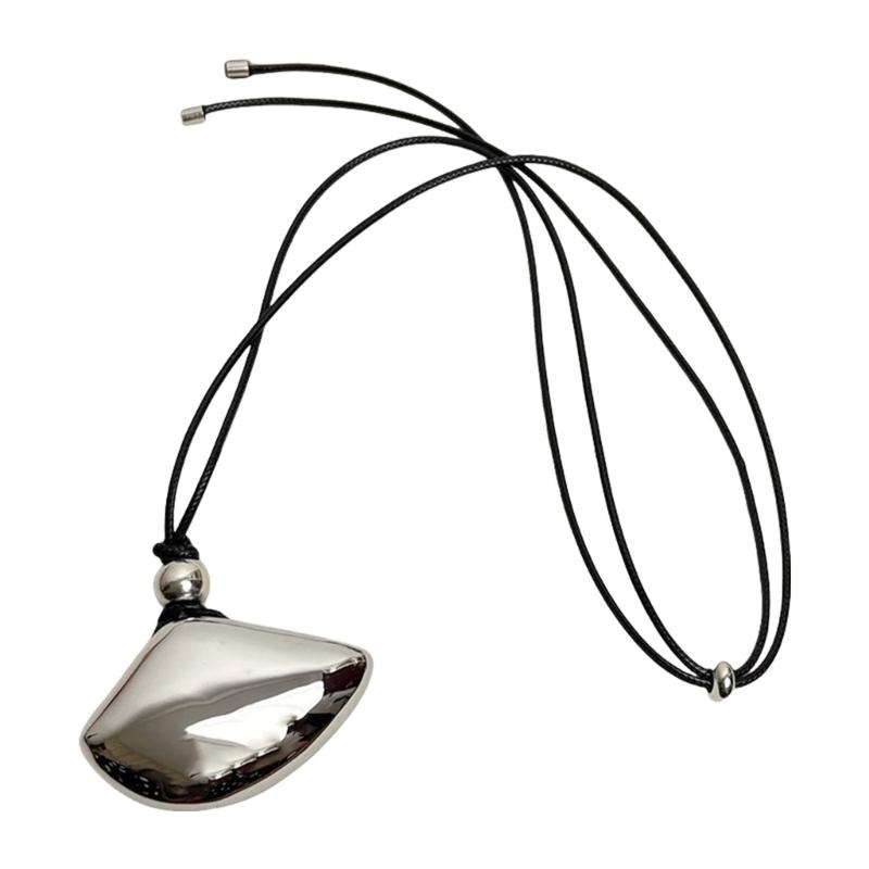 Fashionable Silver Shell Pendant Necklace for Women Adjustable PU Leather Rope Long Neckchain Hanging Neck Chain