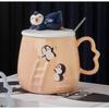 Ceramic Cup with Lid Creative Cartoon Three Dimensional Relief Penguin Mug Office Home Student Gift and Souvenir