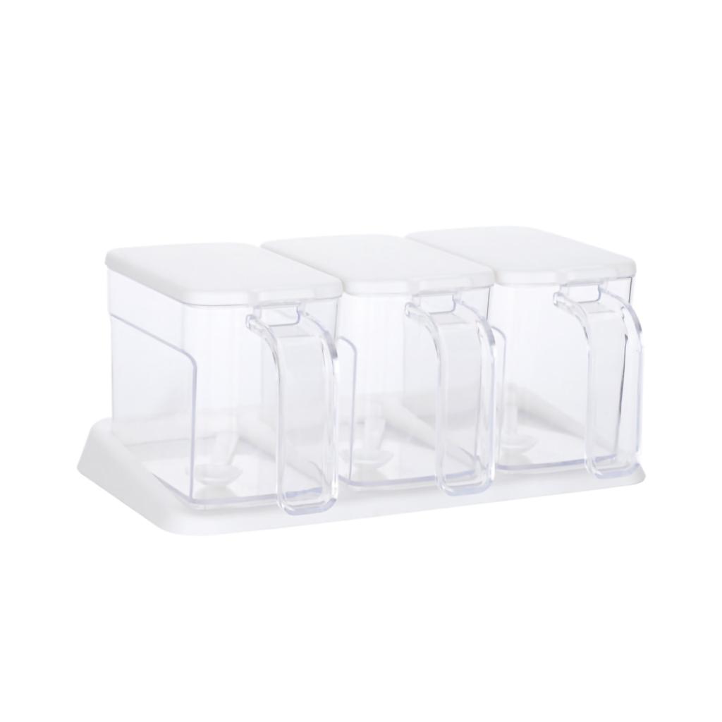 Gewürzbox Set Kunststoff Transparent 3 Fächer Großes Fassungsvermögen Gewürzbox mit Löffeln für Küche