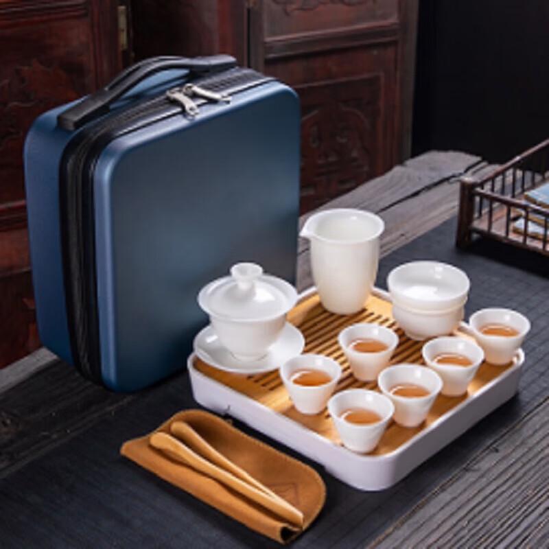 Tuopai 10-Piece Mutton-Fat Jade Gaiwan Travel Tea Set