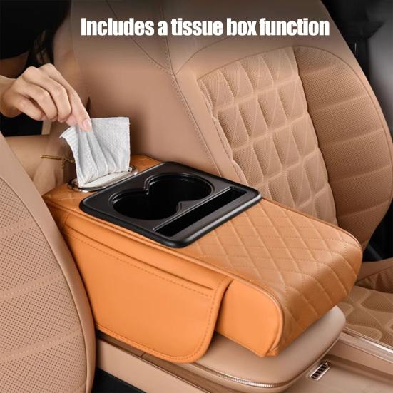 Yousheng Multifunctional Car Armrest Box Faux Leather Armrest Organizer Mat Center Console Cover with Side Pockets Cup Holder Phone Slot Tissue Box