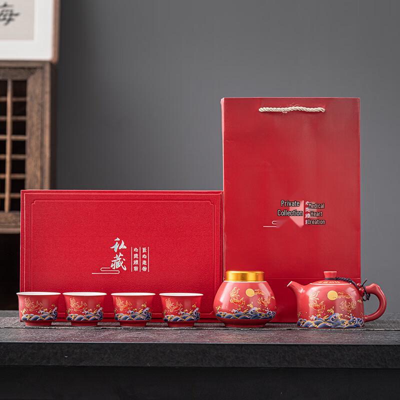 Chaxun Chinese Ceramic Tea Set - Red Koi Gift Edition