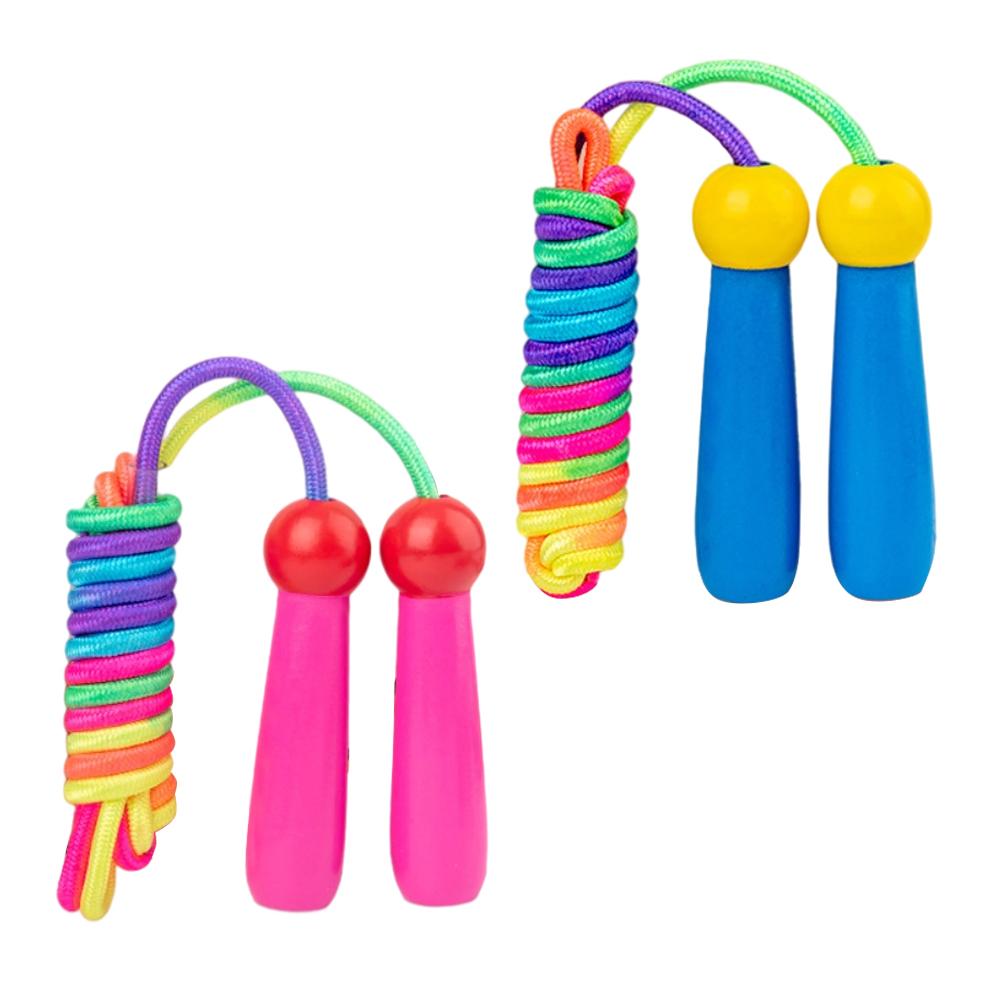 2 Pcs Jump Rope for Kids Adjustable Rainbow Jumping Rope with Wooden Handle for Outdoor Fun Sport
