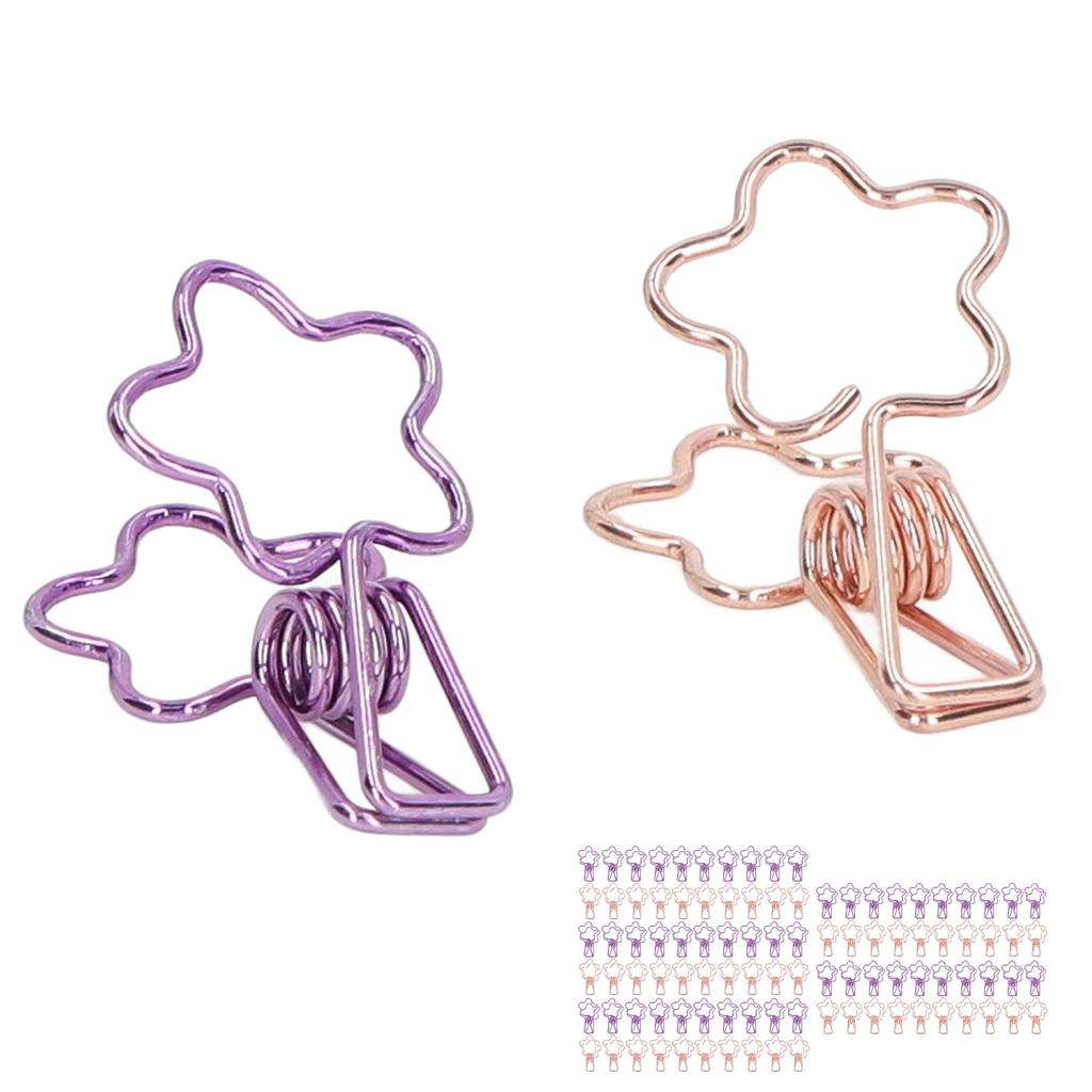 100 Stück Niedliche Büroklammern Cartoon Blumenform Roségold Lila Papierklemmen für Zuhause Schule Büro