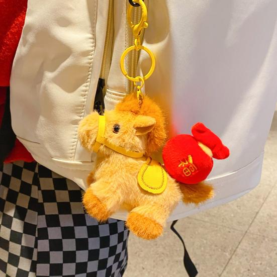 Fluffy Keychain Pendant Plush Horse Zodiac Key Chain with Lucky Bag Orange Decoration Backpack Keys Desktop Ornament