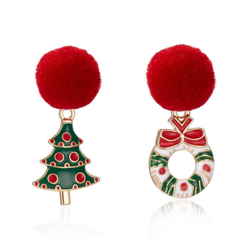 Asymmetrical earrings with pom pom Christmas tree Christmas wreath