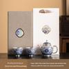 Chinese Gilded Silver Blue & White Ceramic Kung Fu Tea Set