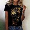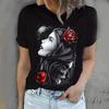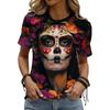 Skelett Blumenmuster T-Shirt Damen 3D Gedruckt Kurze Ärmel Sommer Locker O-Ausschnitt Lässig Bequem Modisch T-Shirt