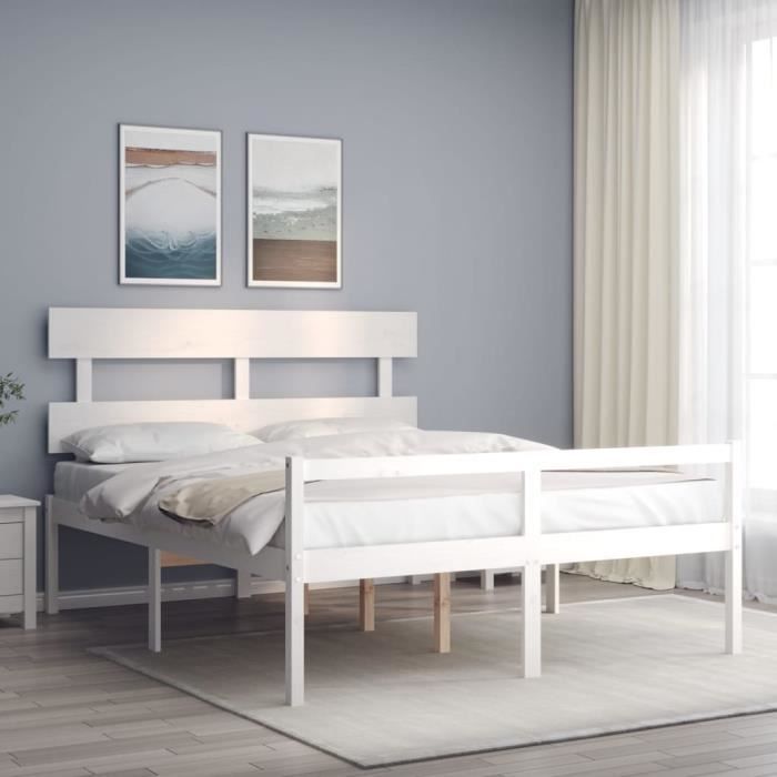 VidaXL Cadre de lit avec tête de lit blanc 160x200 cm bois massif 3195362