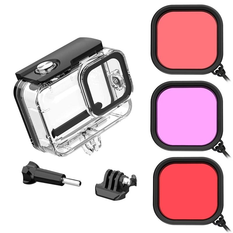 Wasserdichtes Gehäuse für GoPro Hero 12 11 10 9, schwarze Schutzhülle zum Tauchen, Unterwassergehäuse, Shell-Abdeckung, rot-violetter Farbfilter