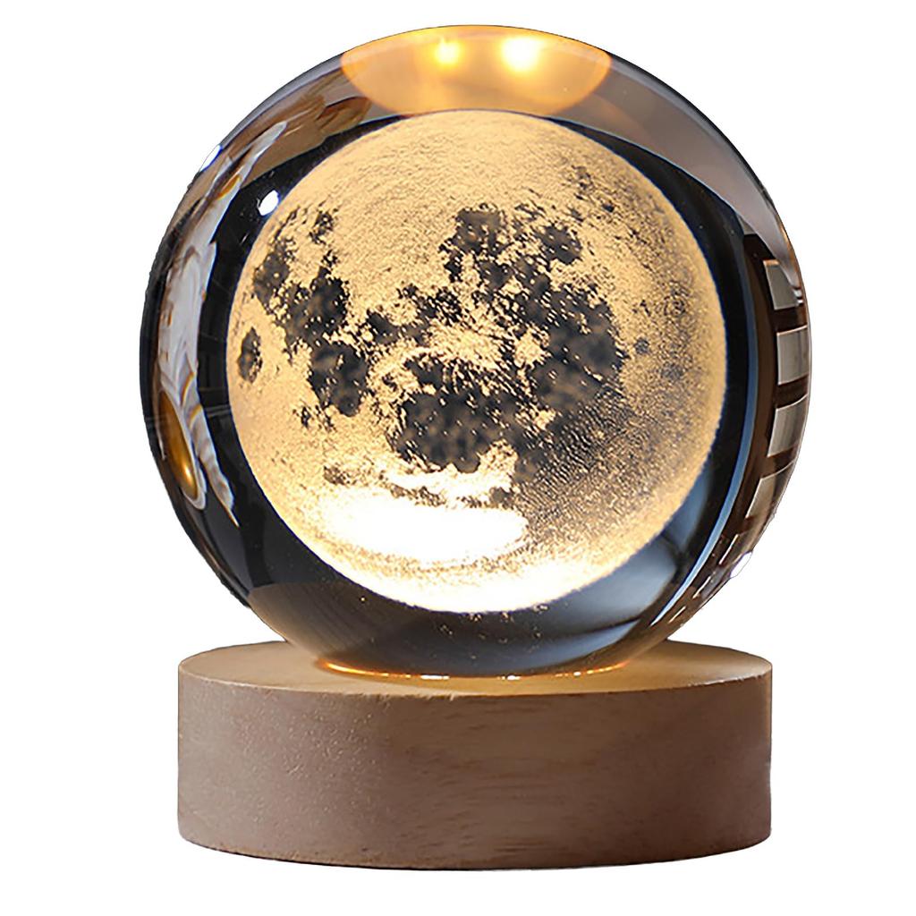 CAWKAY Crystal Ball, Celestial Bodies, Planets, Space, Stars, 3D Object, Tabletop Crystal Object, Decorative Christmas Gift (Moon)