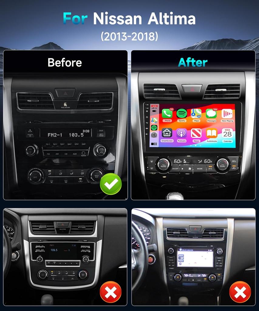 4G 64GB Car Stereo for Nissan Altima 2013-2018, 10.1' HD Touchscreen, Android Auto, CarPlay, WiFi, GPS, Backup Camera