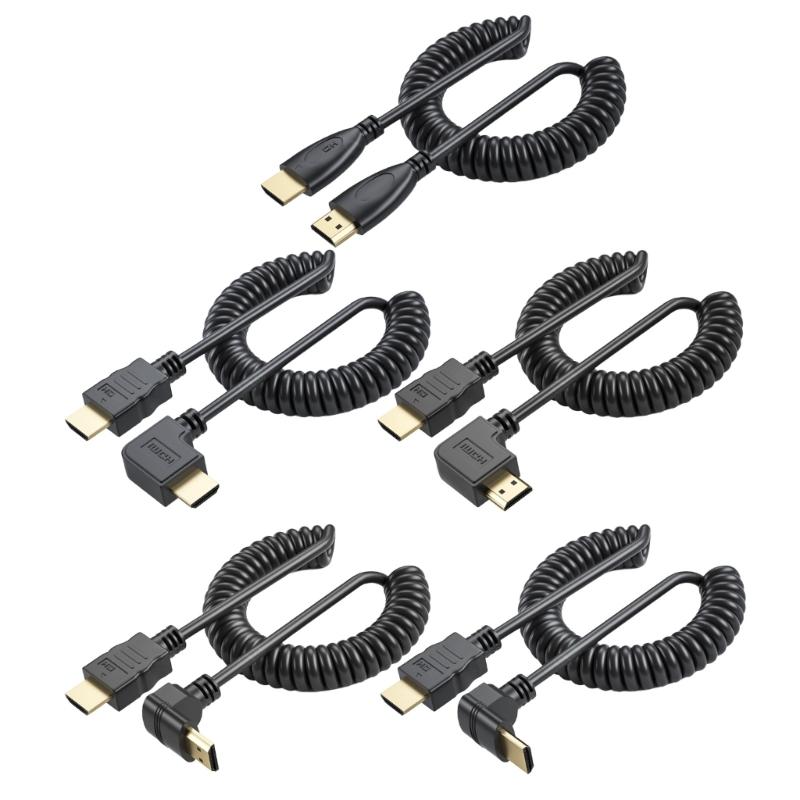 Rechtwinkliges HDTV Spiralkabel 90-Grad Stecker auf Stecker Federdesign Kabel Dehnt sich von 19 auf 75 Zoll aus Unterstützt 4K60HZ