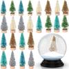 24 Stück Mini Weihnachtsflaschenbürstenbäume mit Holzsockel, Winzige Sisalbäume für Winter-Tischdekoration (Mehrfarbig)