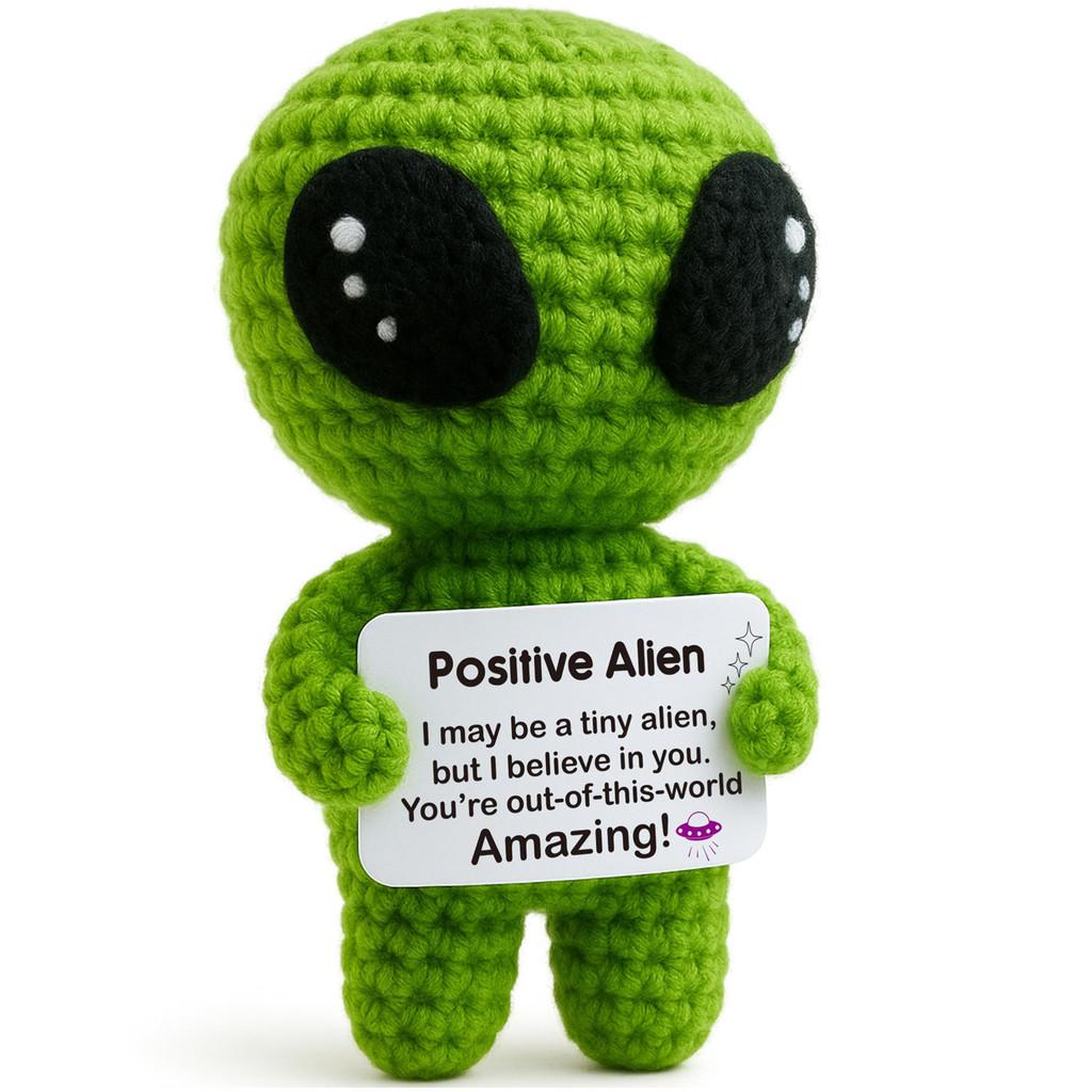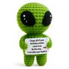Grünes Alien Positives Häkeltier Puppe Mit Karte Schreibtischschmuck Emotionale Unterstützung Handgefertigt Gestrickt Aufmunterungsspielzeug