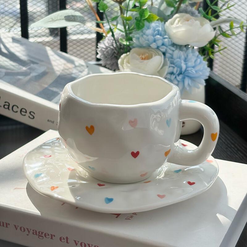 Shangqi Handbemaltes Liebesherz Keramik Kaffeetassen- & Untertassen-Set