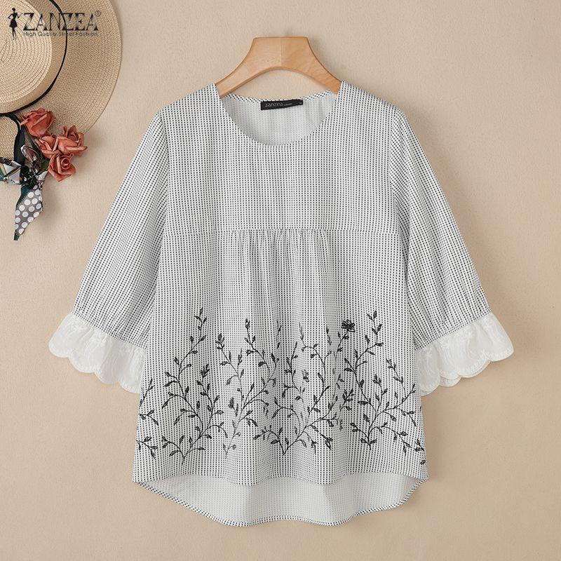 ZANZEA Lässige Bluse mit Rundhalsausschnitt und 3/4-Ärmeln und lockerem Print für Damen
