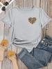 Damen Lässiges T-Shirt mit Leopardenmuster und Herzgrafik, Dehnbares Sommeroberteil mit Rundhalsausschnitt, Weißes T-Shirt, Leopardenmuster-Design, Ästhetische Kleidung