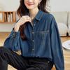 Blaue Jeansjacke für Damen Frühling und Herbst Neuer Stil Hemd Oberteil Hong Kong Stil Retro Layered Shirt