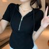 Neues Sommer Schickes und Modisches Kapuzen-Reißverschluss Einfarbig Heiße Mädchen Kurz Hohe Taille Reine Baumwolle Kurzärmeliges T-Shirt Top