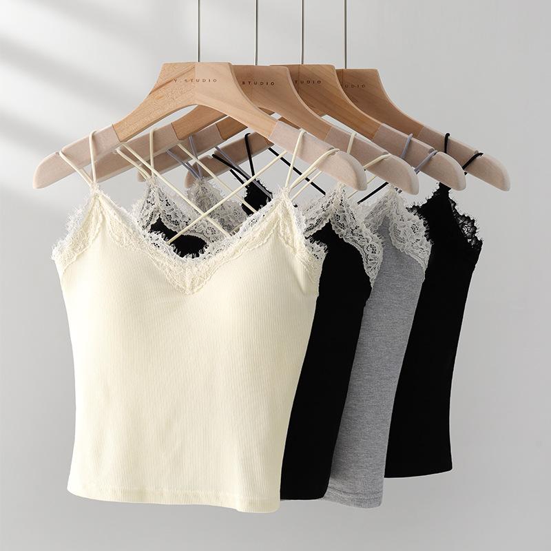 Spitze Spitze Trägertop für Frauen, zum Tragen von Frühlingsanzügen für Frauen mit Slim Fit, mit Brustpolstern und schönem Rücken-Basisband-Top