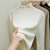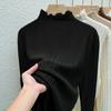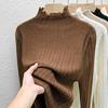 Basis-Shirt mit halbem Rollkragen für Damen, neu für Frühling und Herbst, hautfreundlich, weich und geschmeidig, gestrickter Pullover mit warmem schwarzen Ohren-Top