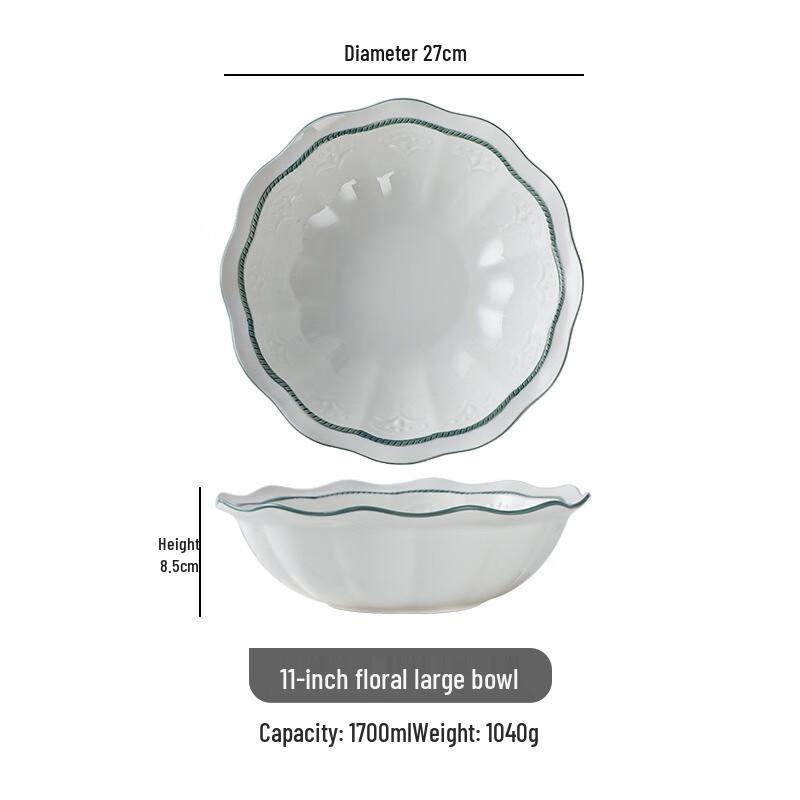 Nordic Style 11-inch Floral Ceramic Serving Bowl