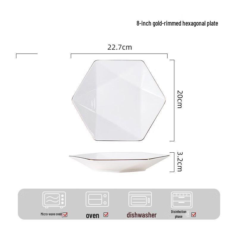 ZISIZ 8-Zoll Goldrand Sechseckiger Keramik-Speiseteller (3 Pack)