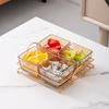 ZISIZ Acryl-Schalenplatte mit Unterteilungen für Snacks und Obst mit goldenem Griff