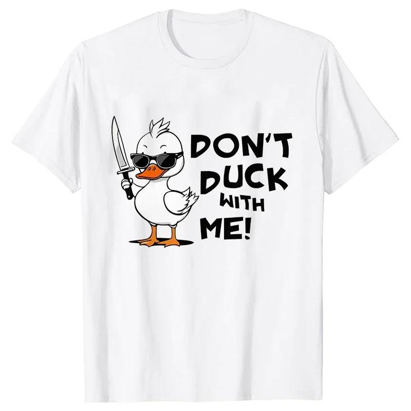 Men's "don't Duck with me" funny cartoon duck pattern printed 100% pure cotton casual short-sleeved T-shirt streetwear top