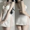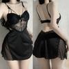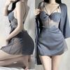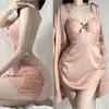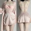 Sexy Spitze 2-teiliges Robe Pyjama Set Rückenfreies Hosenträger Nachthemd Unterwäsche Frühling Sommer Satin Pyjamas Lose Home Wear