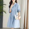 Kleid Taille Schmal Mittel und Lang Laternenärmel Asymmetrischer Plissierter Hemdrock Damen Sommer Design Rock