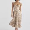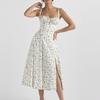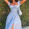 Neue Frühling Damenbekleidung Elegant und Sexy Quadratischer Ausschnitt Schnürung Floral Schlitzkleid