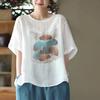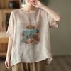 Neues Sommer-Retro-Oberteil aus Baumwolle und Leinen mit Druck für Damen, lockere Pullover im literarischen Retro-Casual-Stil, kurzärmiges T-Shirt