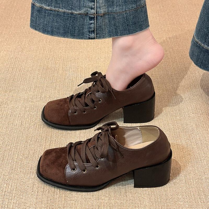 Herbst Winter Vintage Eckige Zehenpartie Dicker Absatz Damen Mary Jane Schuhe Street Style Schnürung Partykleid Damen Pumps