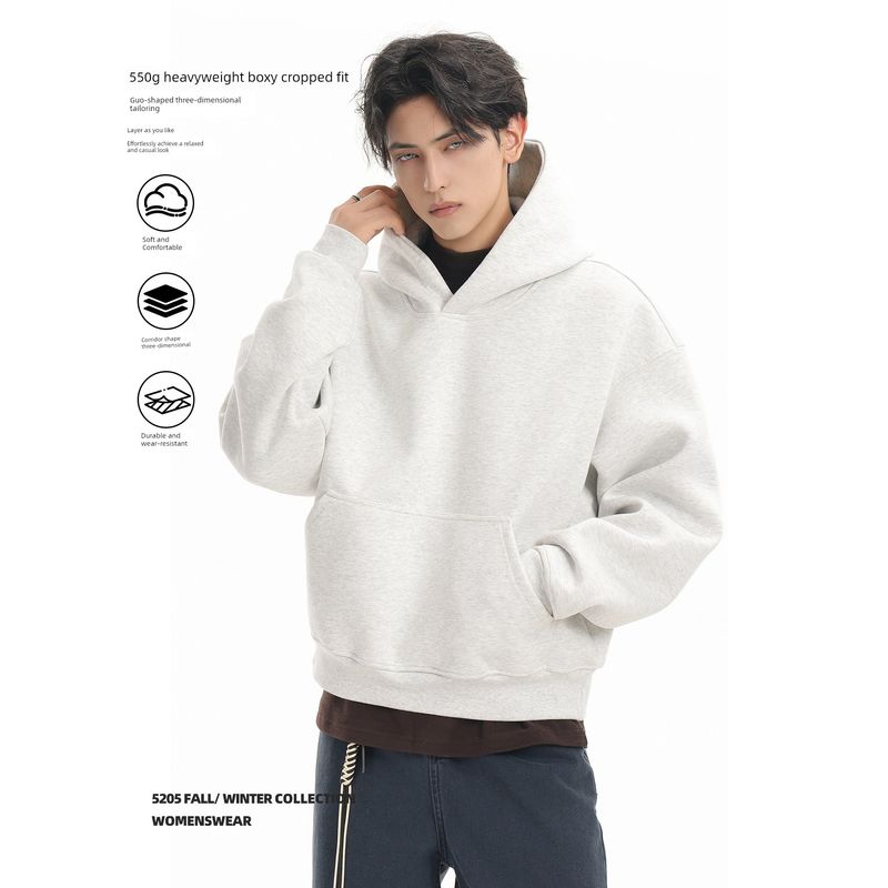 Acrardic Heavyweight 550g Sweatshirt for Men, Hooded, Casual, Boxy, Short Style, Structured, Loose, Versatile Pullover