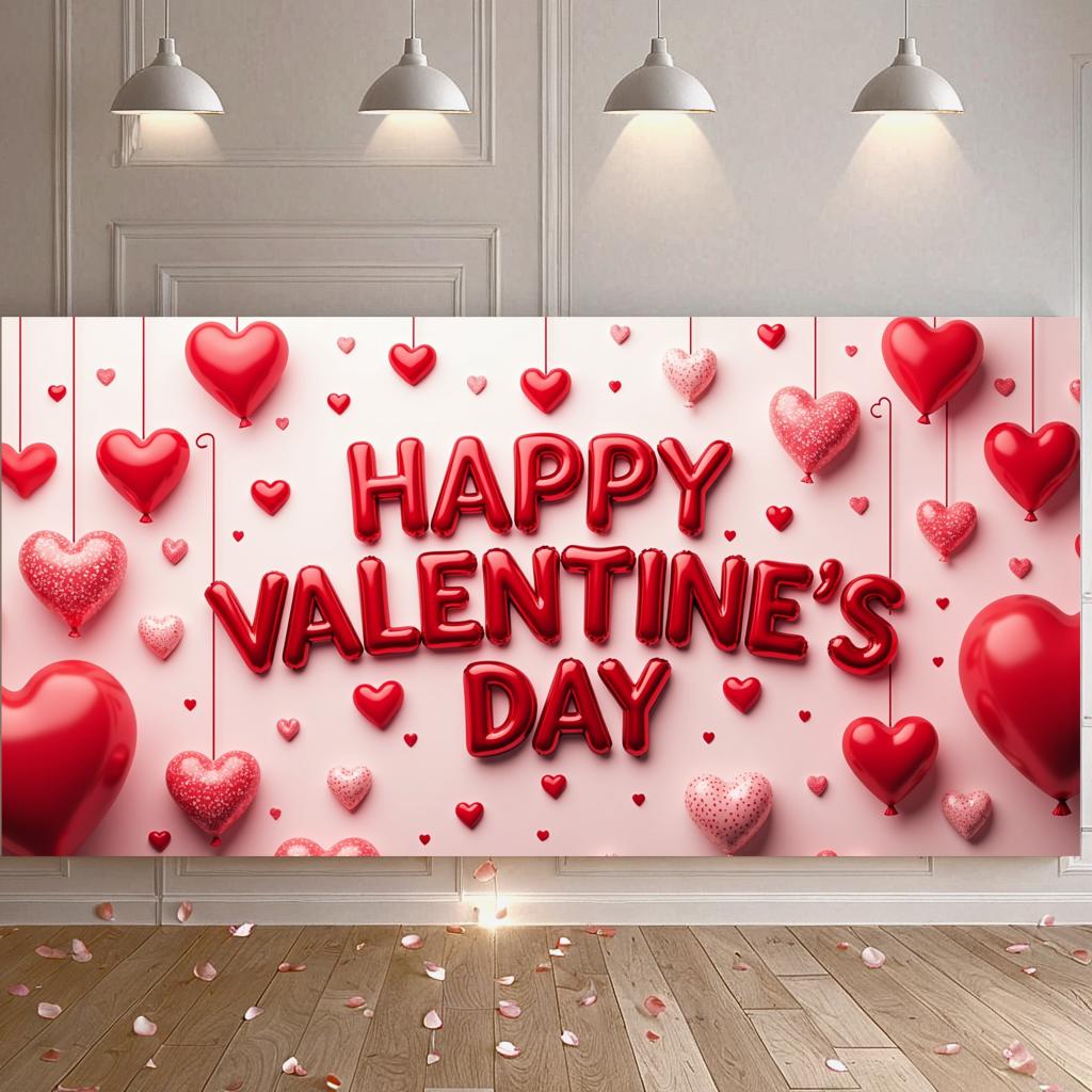 Valentine's Day Banner Backdrop Romantic Decorations Heart Background Red Love Celebration Photography Prop Party Supplies