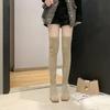 Damenstiefel Herbst/Winter Neue Lange Stiefel Eckige Zehenpartie Elastische Kniehohe Stiefel Rutschfestes Wildlederimitat Bequeme Modeschuhe