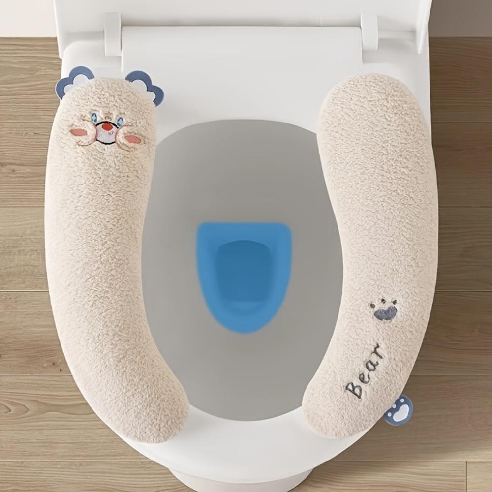 1 Pair Cozy Cartoon Toilet Seat Thick Warm Non Slip Toilet Seat Cover Easy Clean Pedestal Ring Bathroom Accessories All Seasons