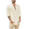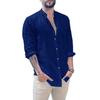 Europäischer und amerikanischer Herren Leinen Cardigan Einfarbig Lässig Stehkragen Langarmhemd