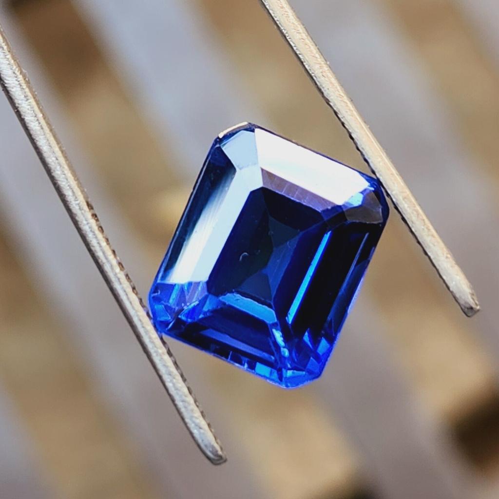 12 Cts Heated Ceylon Blue Sapphire Emerald Cut Certified Loose Gemstone
