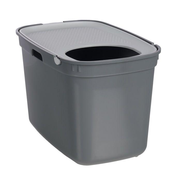 Bac a litière pour chat 39 x 59 x 38 cm entrée par le dessus Kato gris
