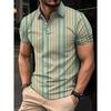 3D-gedrucktes gestreiftes Colorblock Herren-Poloshirt Buntes Muster T-Shirt Sommer Locker Street Revers Oberteil Knopf Kurzärmelig