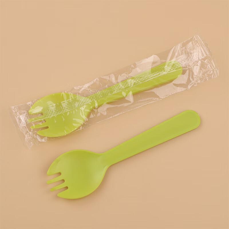 Individually Wrapped Green Disposable Plastic Spoons/Forks