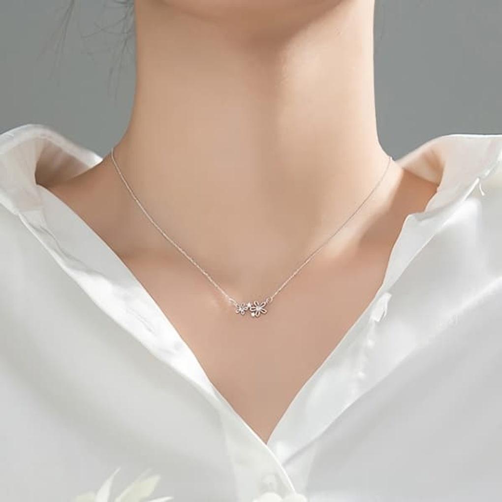 Women's 925 Silver Twin Flower Layered Silver Necklace
